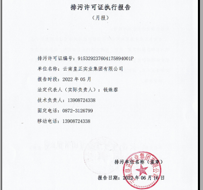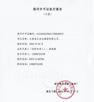 云南皇正實業集團有限公司4月排污許可執行報告 4月排污許可執行報告